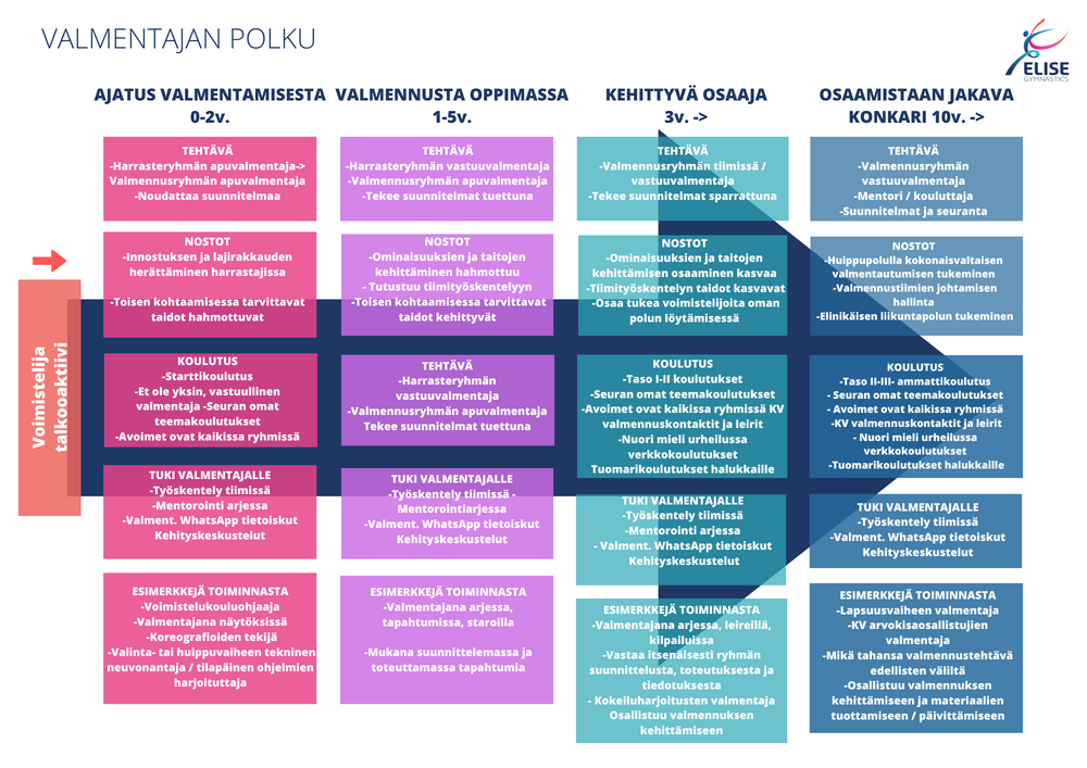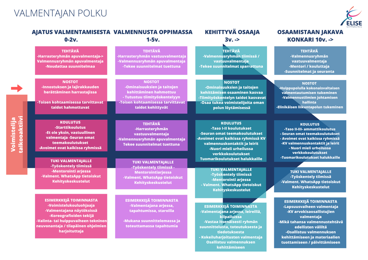 Lisätieto voimisteluohjaajan koulutuspolusta https://www.voimistelu.fi/ohjaajille-ja-valmentajille/koulutuspolku/