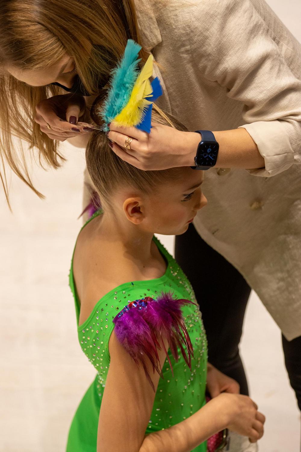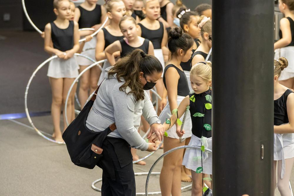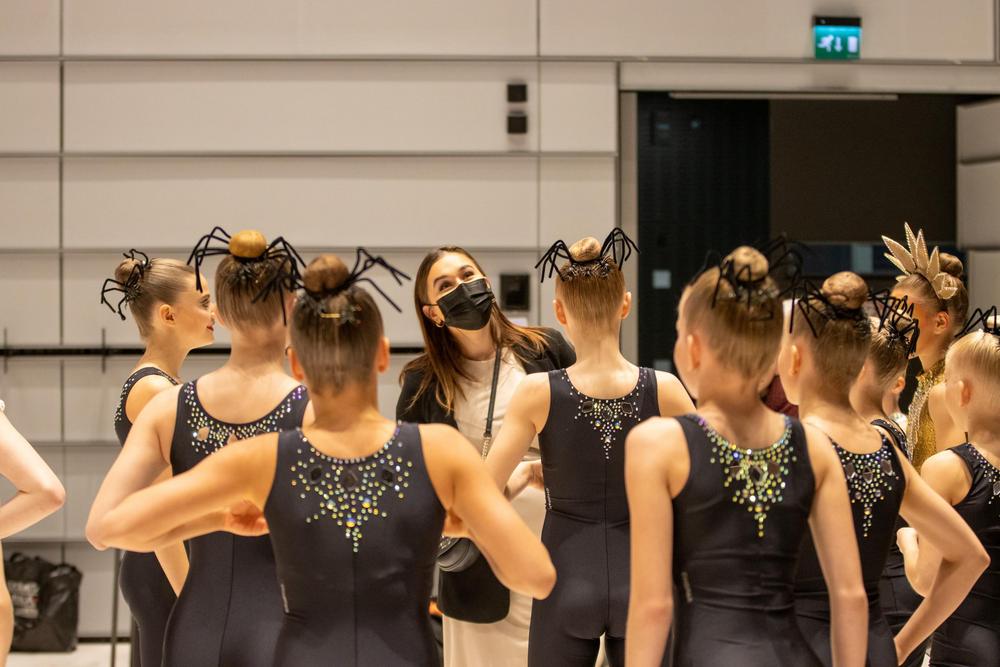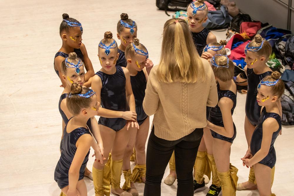 Musiikkitalon käytävät pukuivat intoa ja jännitystä, kun sadat voimistelijat valmistautuivat tärkeään esiintymishetkeen. Näytöksessä nähtiin Elisen rytmisen sekä joukkuevoimistelun valmennusryhmiä, harrastajia, rytmisen voimistelun maajoukkue, joukkuevoimistelun maajoukkueessa voimisteleva Gloria sekä seuran pienempiä jopa 3-vuotiaita voimistelijoiden alkuja.